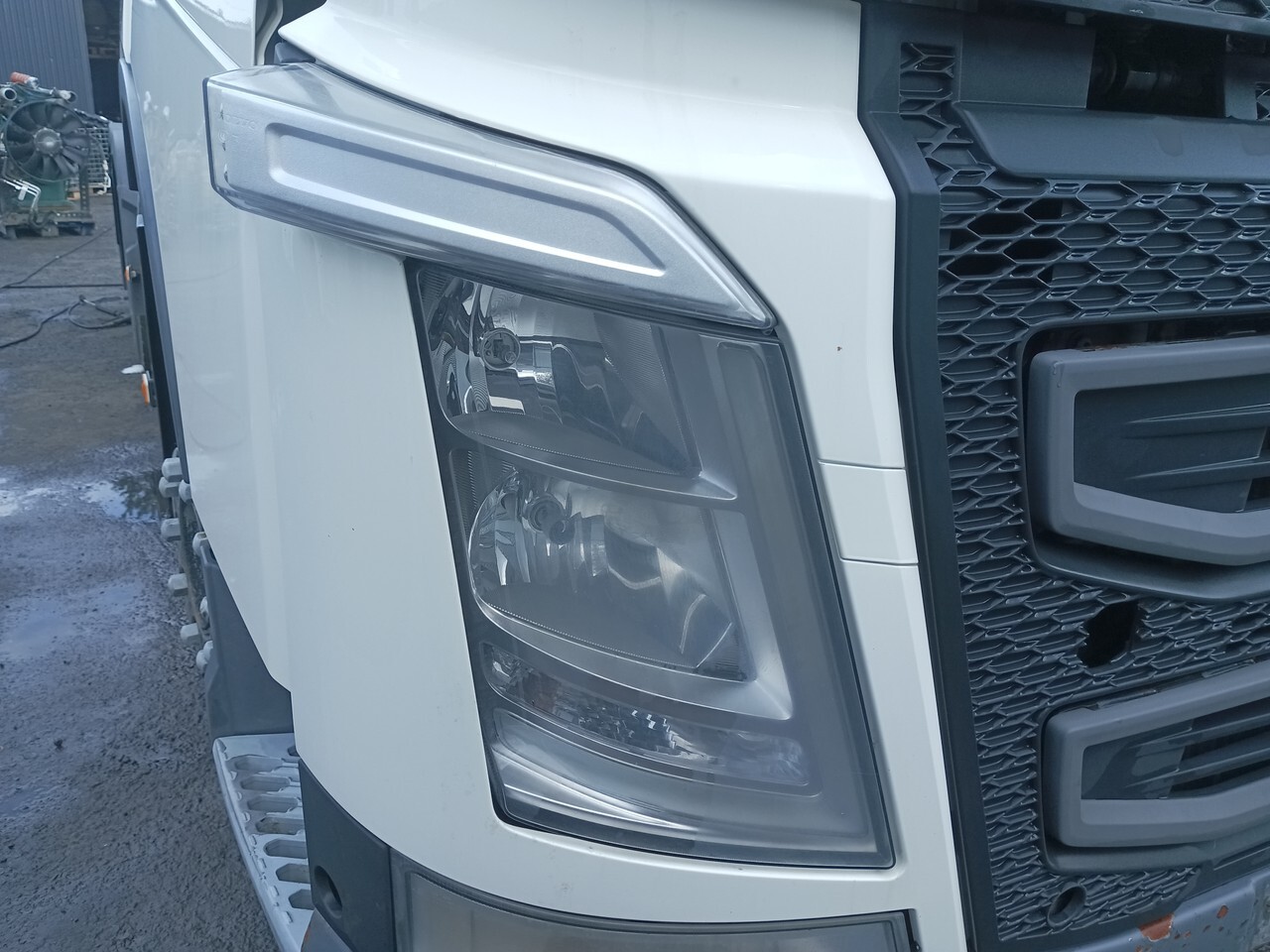Облицовка шасси, рамы, грузовика, бампер, передний, фара передняя левая, правая противотуманная, губа, решетка радиатора, накладка бампера, губа, Ноускат Носе кат, усилитель блок управления светом, подножка, тупенька, ноускат в сборе, молдинг бампера правый, молдинг бампера левый, молдинг дополнительный правый, молдинг дополнительный левый, угол бампера левый, угол бампера правый, облицовка птф левая, облицовка птф правая, корпус фары правый, корпус фары левый, верхняя часть бампера, проводка фар, фара правая, поворотник правый, фара правая в сборе, фара левая в сборе, поворотник левый, фара левая, корпус подножек в сборе левый, корпус подножек в сборе правый, Усилитель бампера защитный щиток передний, белый.