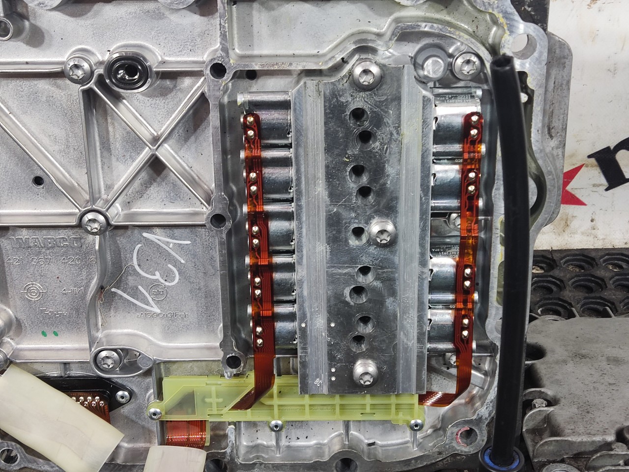 Блок управления АКПП, модулятор управления автоматической коробкой передач, автомат, механизм выбора передач, КПП: АКПП, AT2612F E, корпус цилиндра, крышка, поршневой шток, вилка переключения, крышка цилиндра, делитель, крышка цилиндра демультипликатора, рено, модулятор.