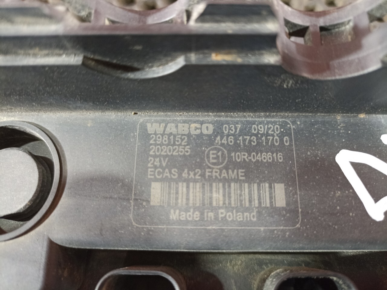 Тип устройства: ECAS 4x2 FRAME – блок управления электронной пневмоподвеской (ECAS) для двухосного автомобиля (4x2) с рамной конструкцией (FRAME).