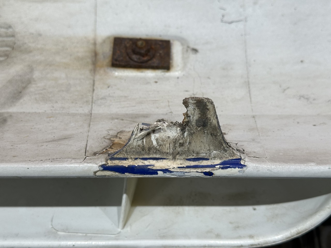 Дефект: трещины, обломано крепление, присутствует следы ремонта.
