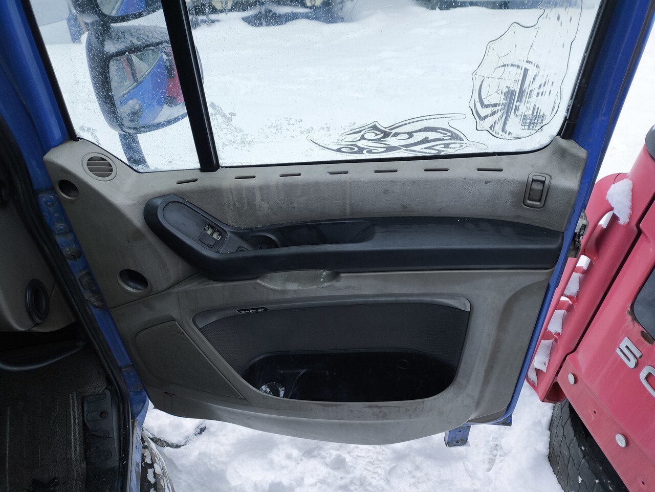 Дверь, передняя, правая, пассажирская R, RH, люк, проход в кабину, в салон, синий цвет.