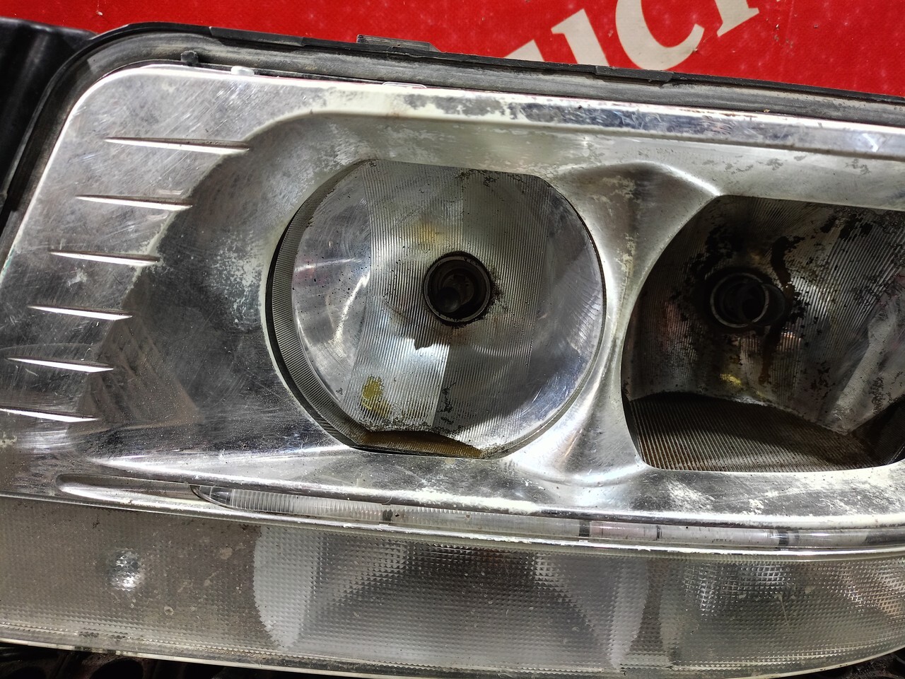 Дефект: повреждения отражательных элементов, отсутствует стекло