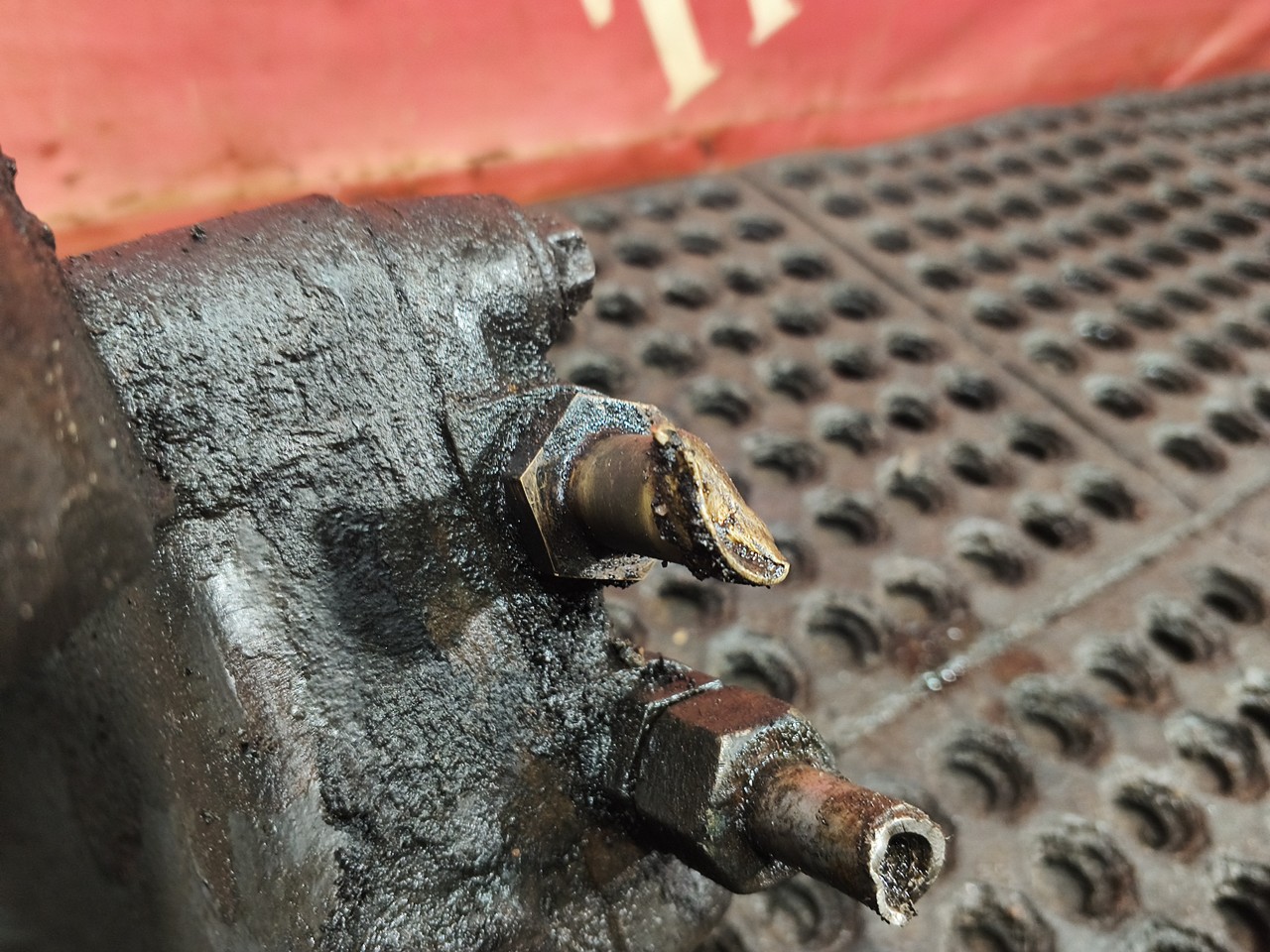 Замят штуцер, отсутствует пыльник сошки.