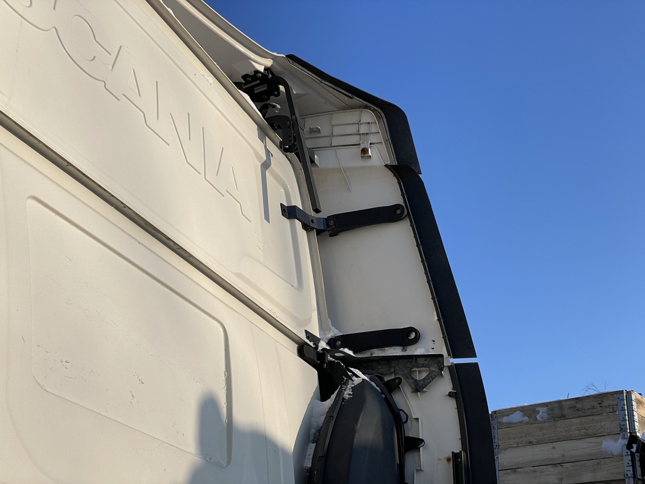 Спойлер, обтекатель, обвес кабины, на кабину, спойлер кабины, комплект спойлеров верхний левый, правый, боковой, боковые, верхний, уголок, уголок, обтекатель, в сборе с кронштейнами крепления для кабины, с кабины HighLine, хайлайн.