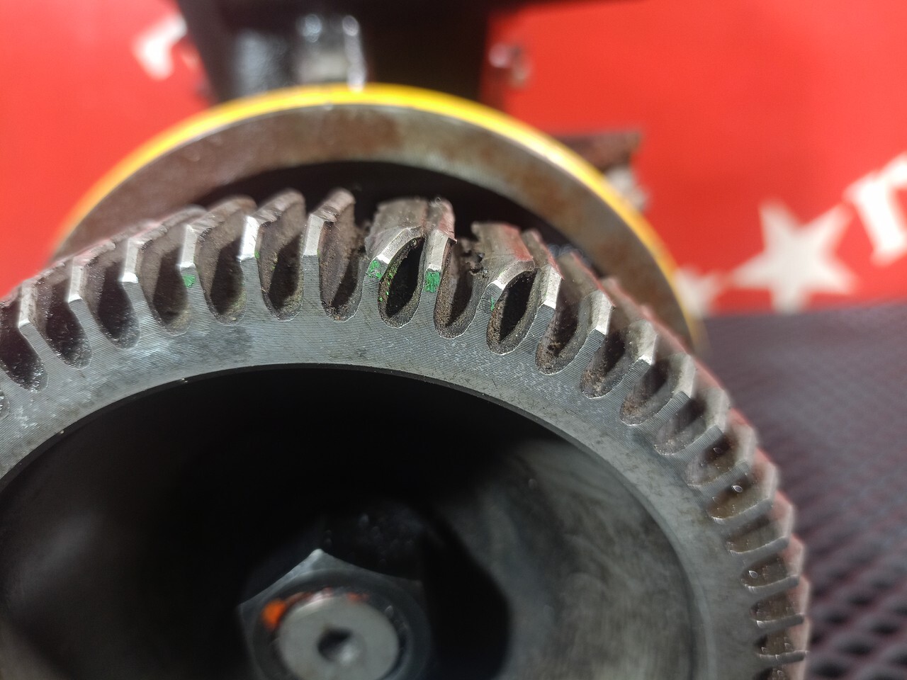 Дефект: замятие шестерни, повреждены крепежные места, скол в верхней крышке.