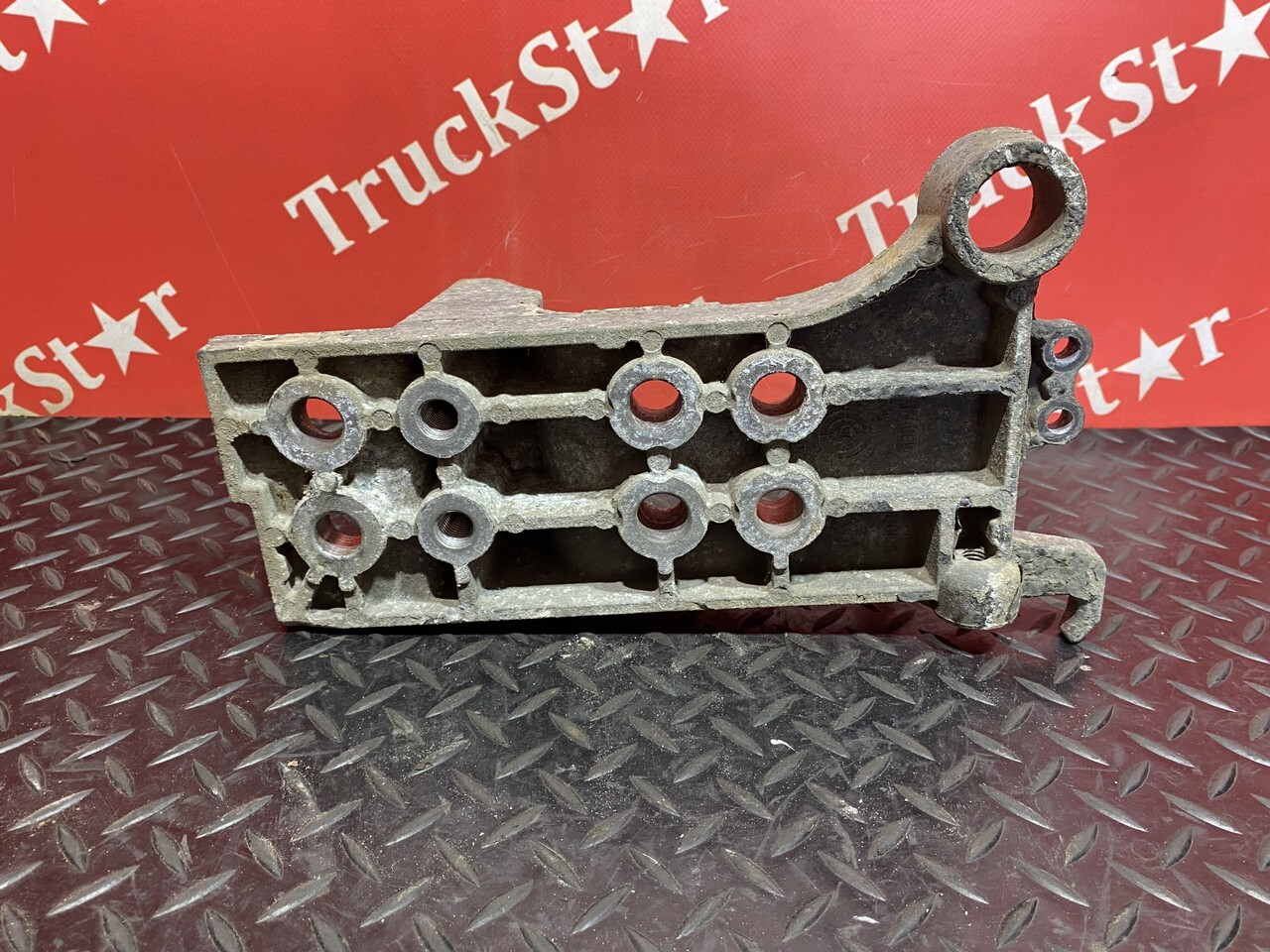 Кронштейн нижний, опора переднего амортизатора кабины, крепление переднего бампера правый, правая сторона, R, RH, силуминовый, облицовки шасси, спереди.