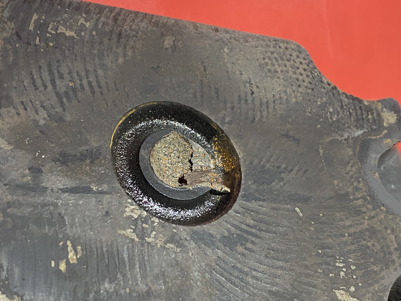 Дефект: отсутствует штифт направляющей к мосту, отмечено стрелкой на фотографии.