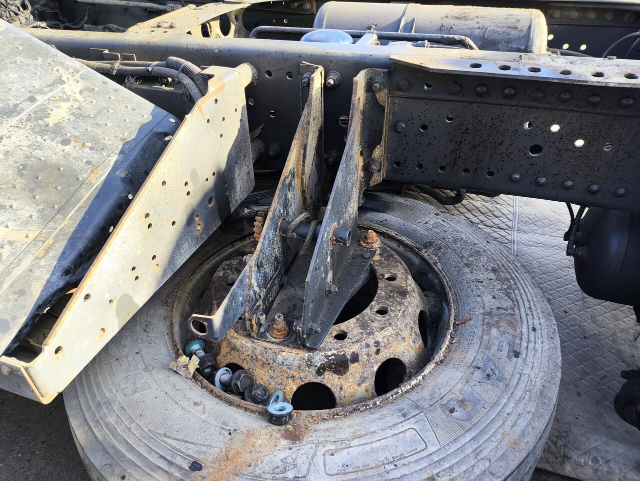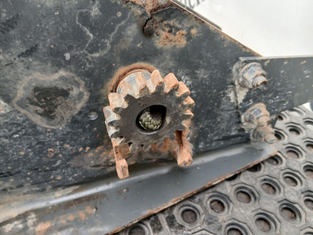 Лебедка, кронштейн, крепеж, крепление, крепежная установка запасного колеса в сборе с кронштейном противооткатного упора, на раму, к раме.