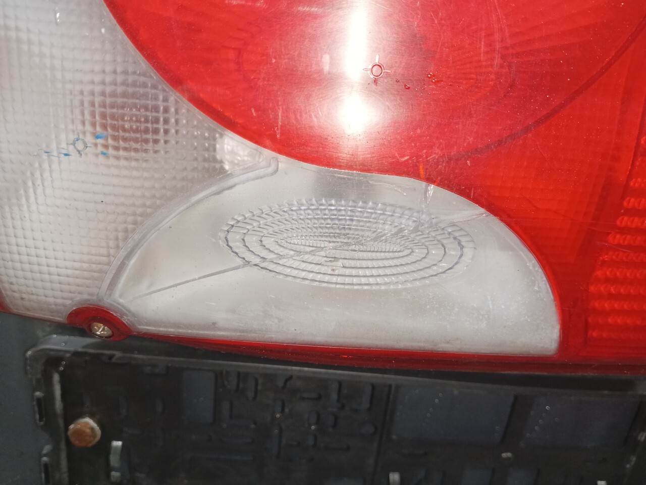 Дефект: скол, трещина на стекле фонаря.