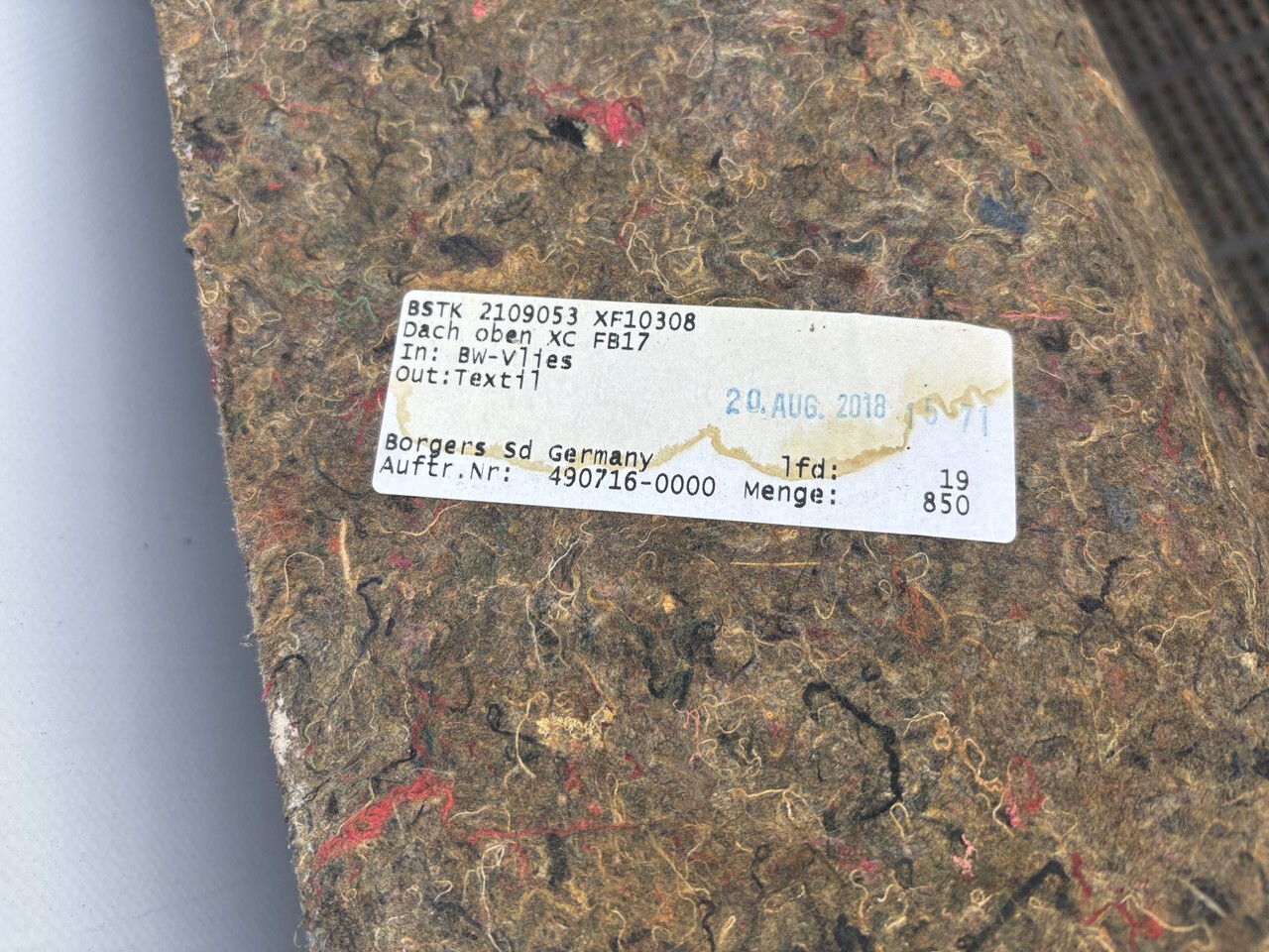 Обшивка потолка в хорошем состоянии, снята с машины 2018 года.