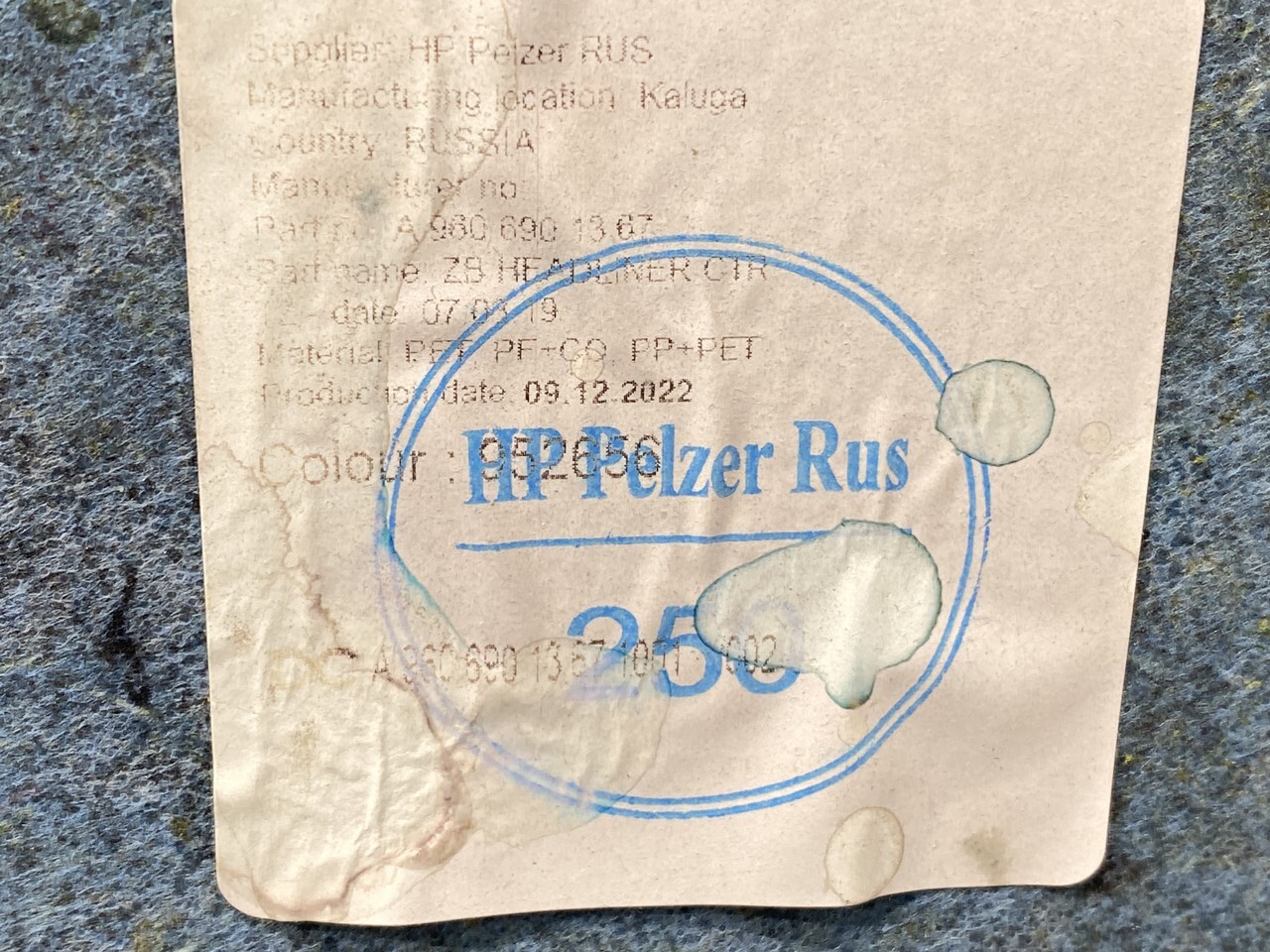 Обшивка потолка в отличном состоянии, снята с машины 2023 года.