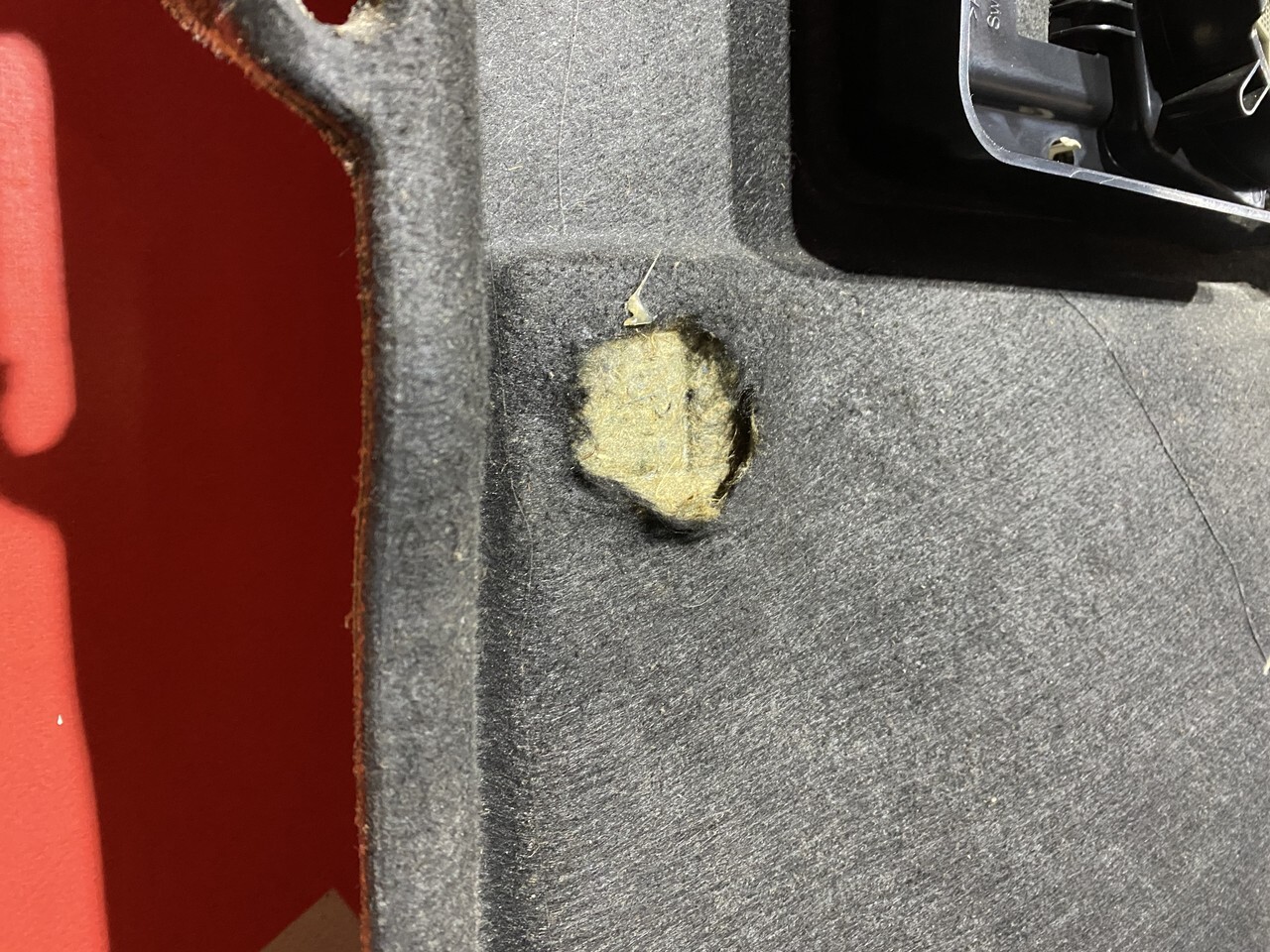 Обшивка задней стенки в таком состоянии как на фото, снята с машины 2014 года.