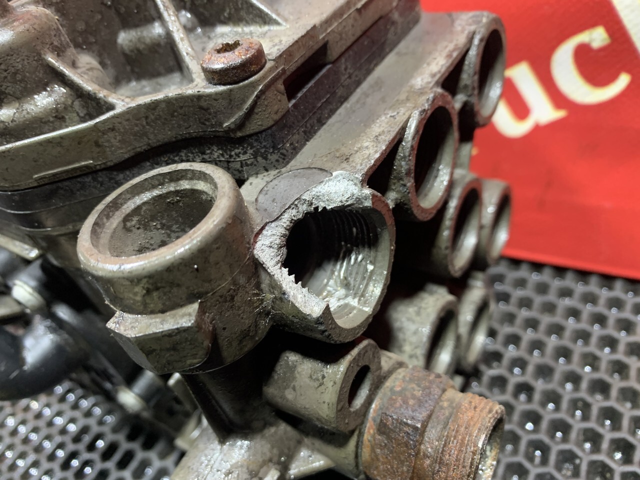 Скол на крепление трубки, отображено на фото.