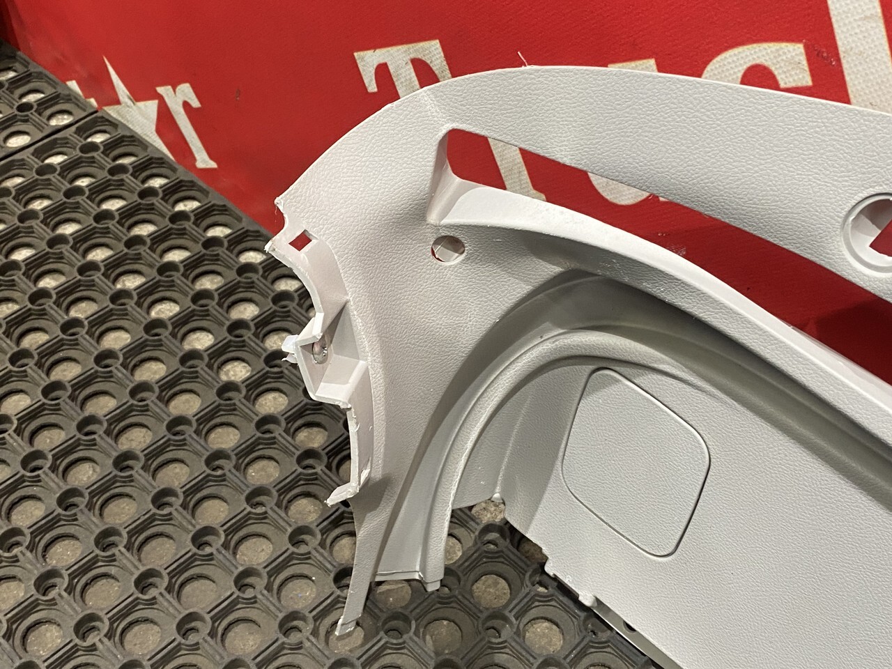 Дефект: присутствует трещина на креплении, замят угол.