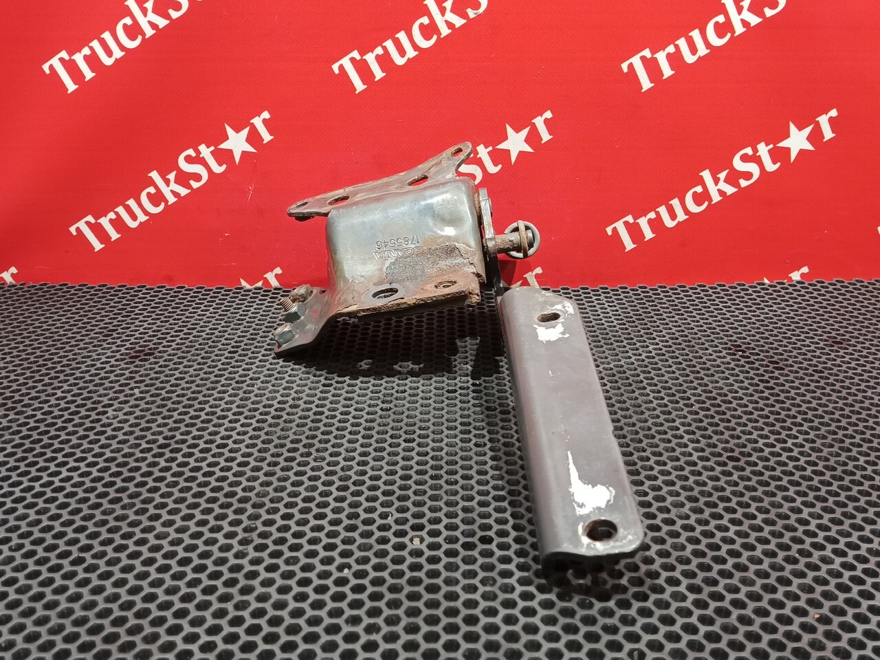 Петля капота облицовки спереди металлическая, кабины, кронштейн, соединение, крепление, левая, слева, L, LH, с кронштейном, крепежом, держателем.