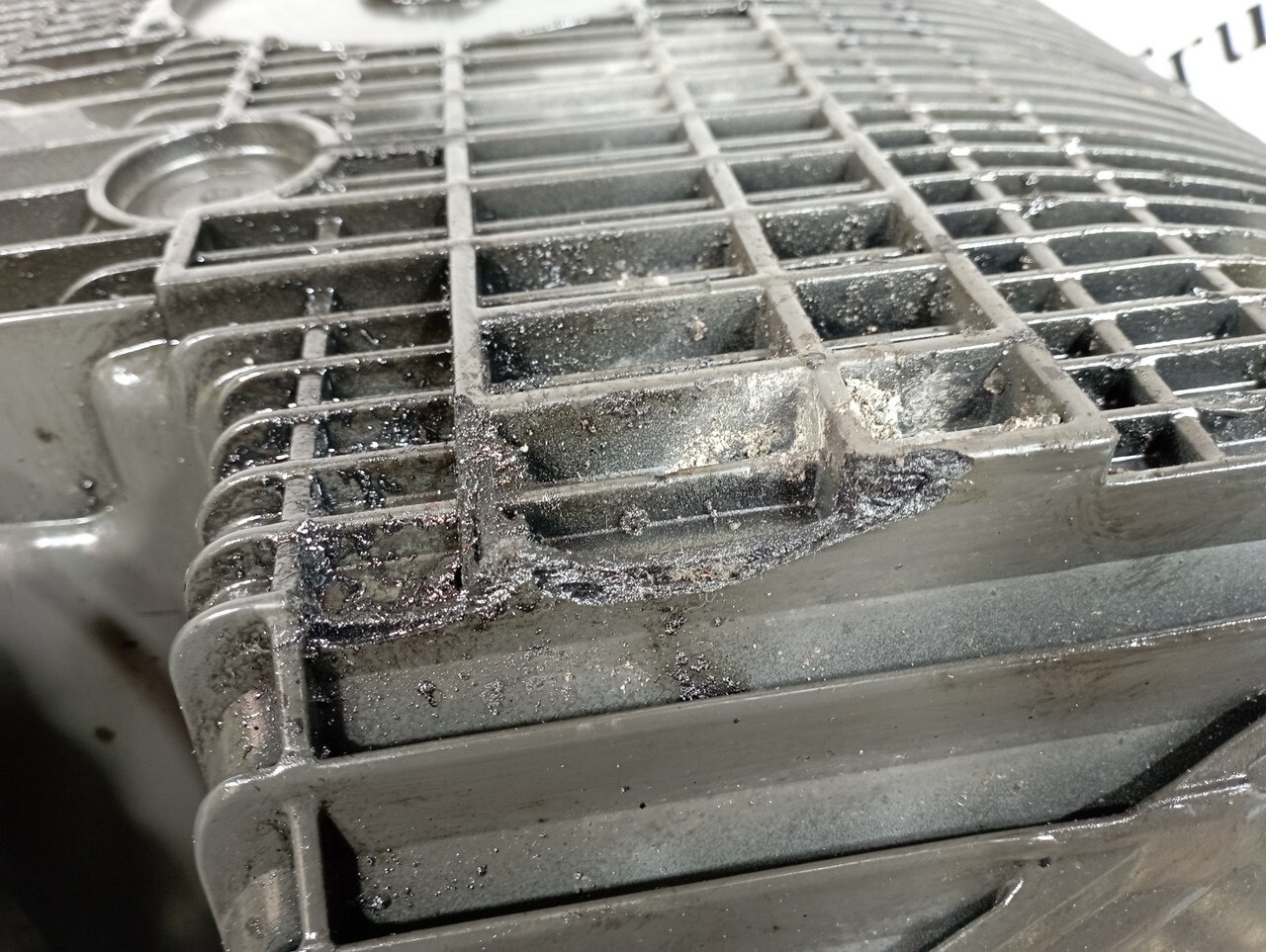Поддон двигателя в состоянии как на фотографии, снят с машины 2018 года.