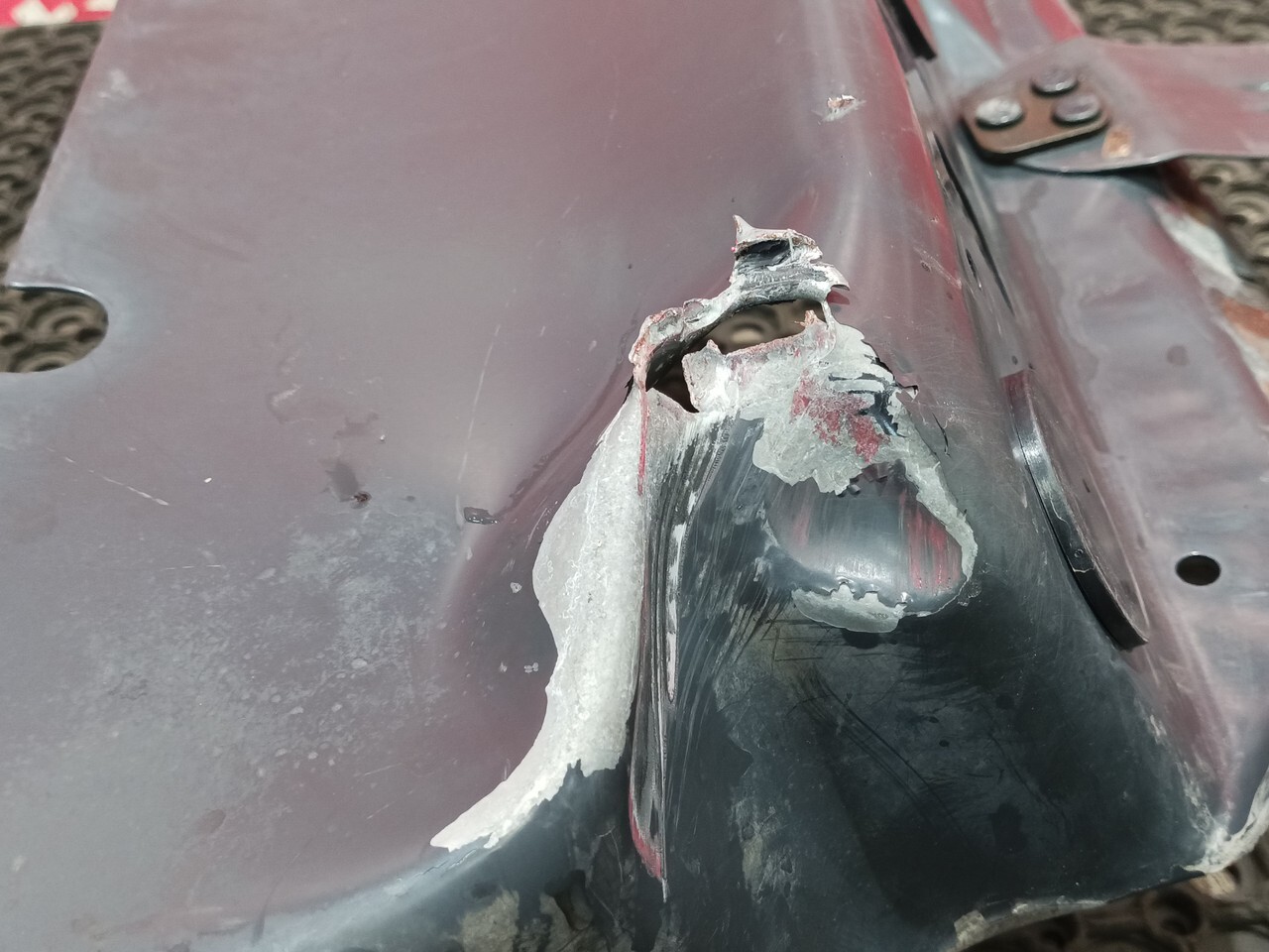 Дефект: замятия, сквозное отверстие.
