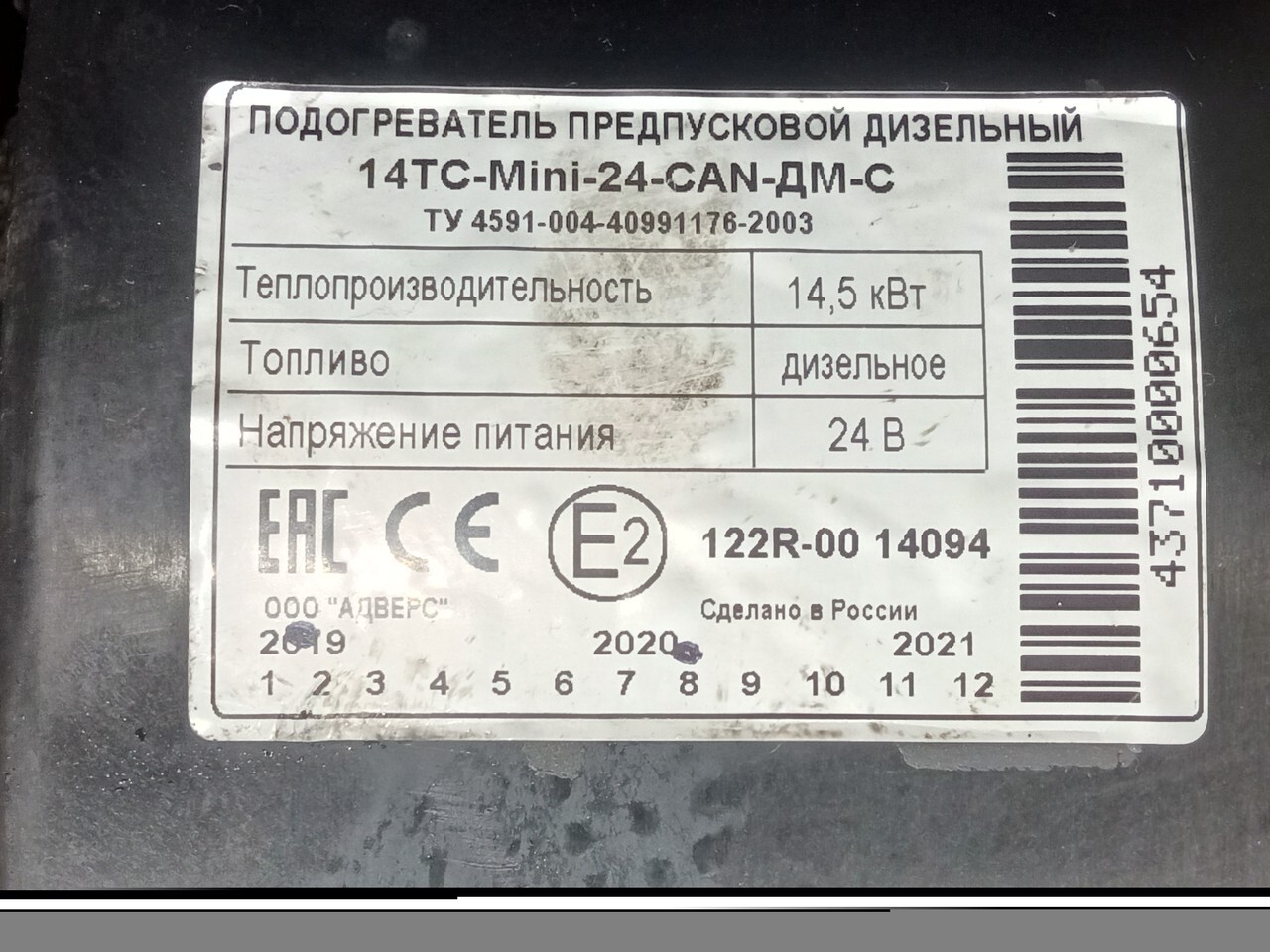 Предпусковой подогреватель в рабочем состоянии, снят с машины 2020 года.