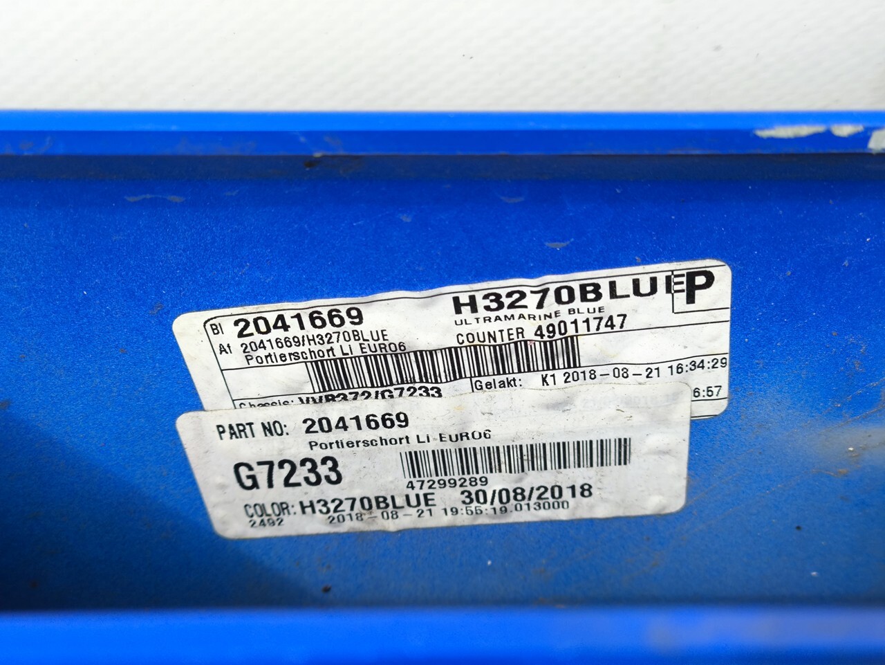 Продолжение двери левой внутренняя часть, слева, L, облицовка, накладка, удлинитель, удлинение с внутренней стороны, наружная часть, в сборе с кронштейном, синий, синего цвета.