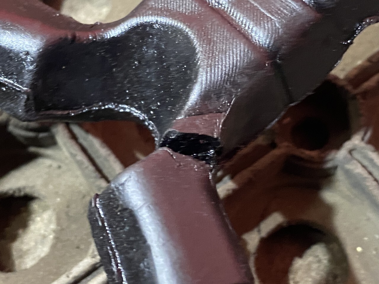 Трещина на кожухе проводки.