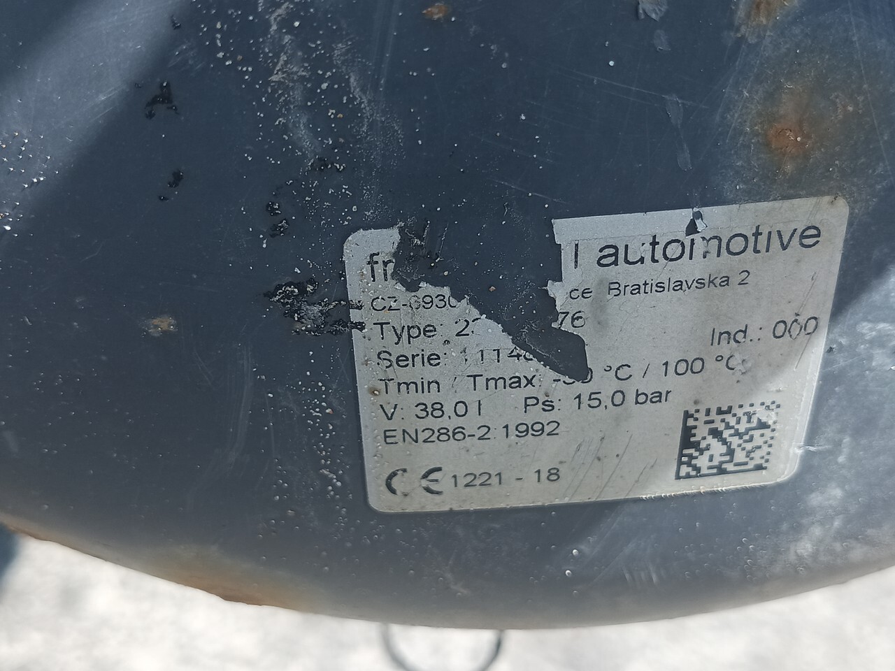 Ресивер воздушный 38L в хорошем состоянии, снят с машины 2018 года.
