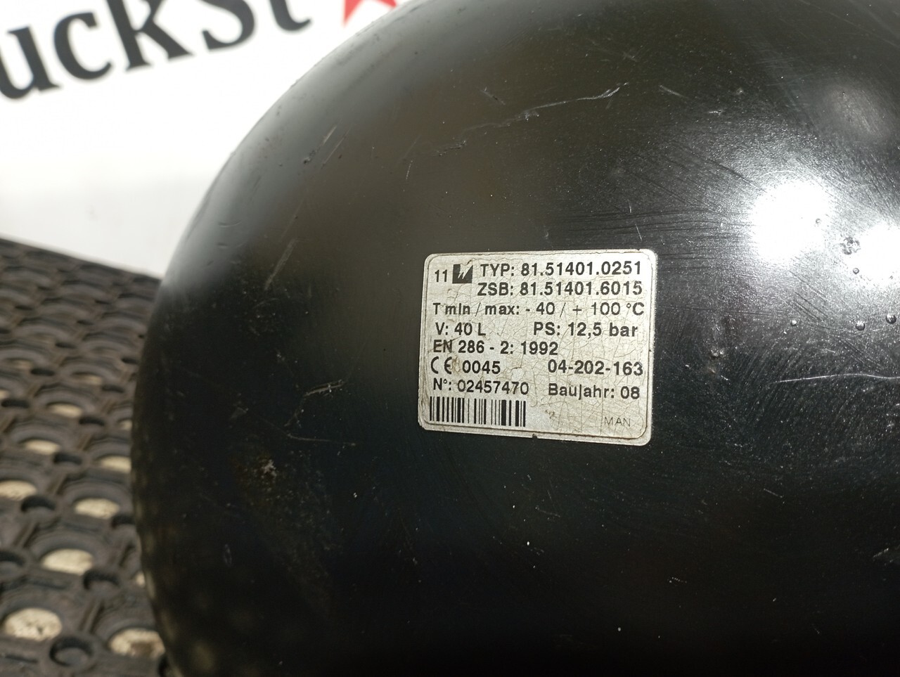 Ресивер воздушный, тормозной, пневматической системы, баллон сжатого воздуха, резервуар V = 40 L литров, Ps = 12,5 bar, бар