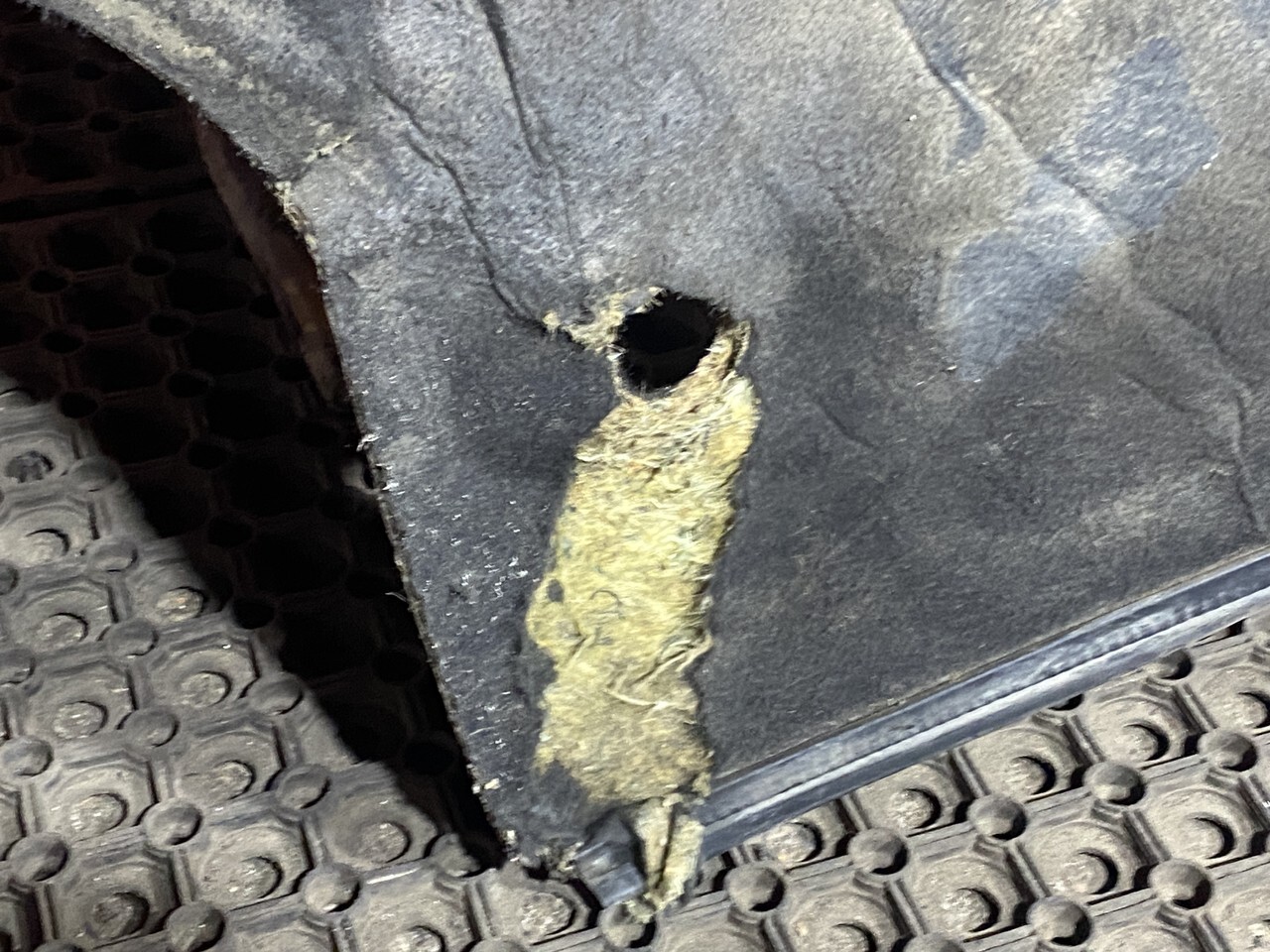 Шумоизоляция двигателя в состоянии как на фотографии, снята с машины 2018 года.