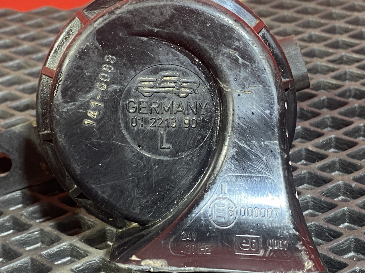 Сигнал звуковой, звуковой рожок, клаксон, гудок, низкочастотный, низкая частота, низко тональный, L, левый, электро, электросигнал, электрический 24V, 24В.