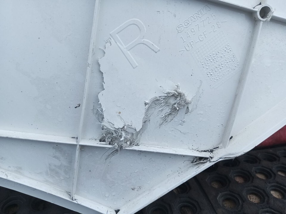 Спойлер кабины боковой верхний правый в таком состоянии, снят с машины 2013 года.