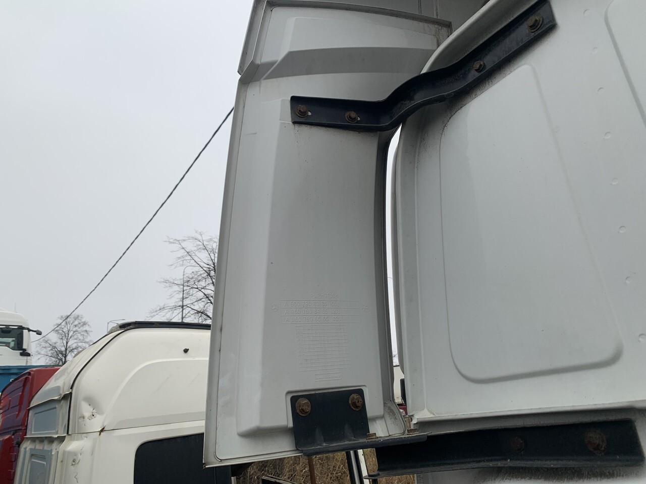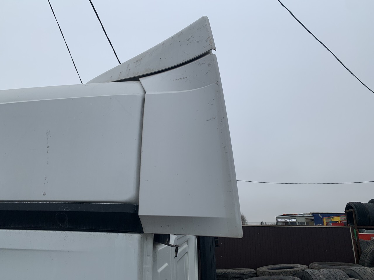 Спойлер кабины боковой, левый, белый цвет, боковой, верхний, сверху, обтекатель, облицовка, отражатель, L LH.