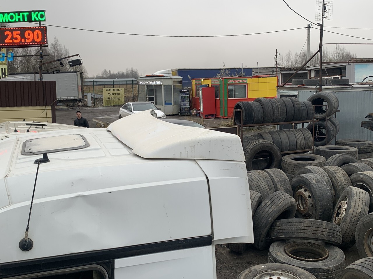 Спойлер кабины верхний в таком состоянии как на фото, снят с машины 2020 года.