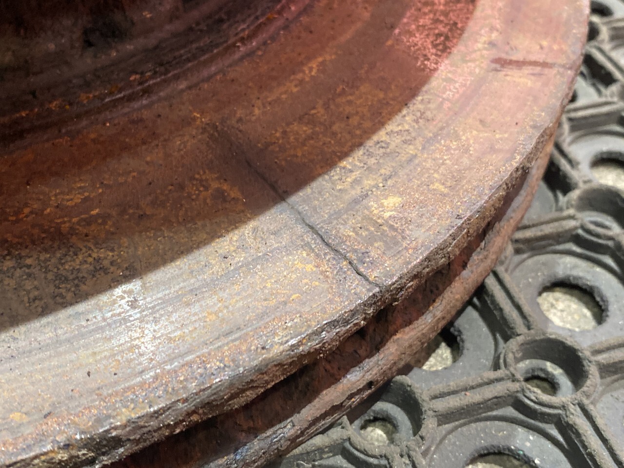 Дефект: сколы и трещины на тормозном диске.