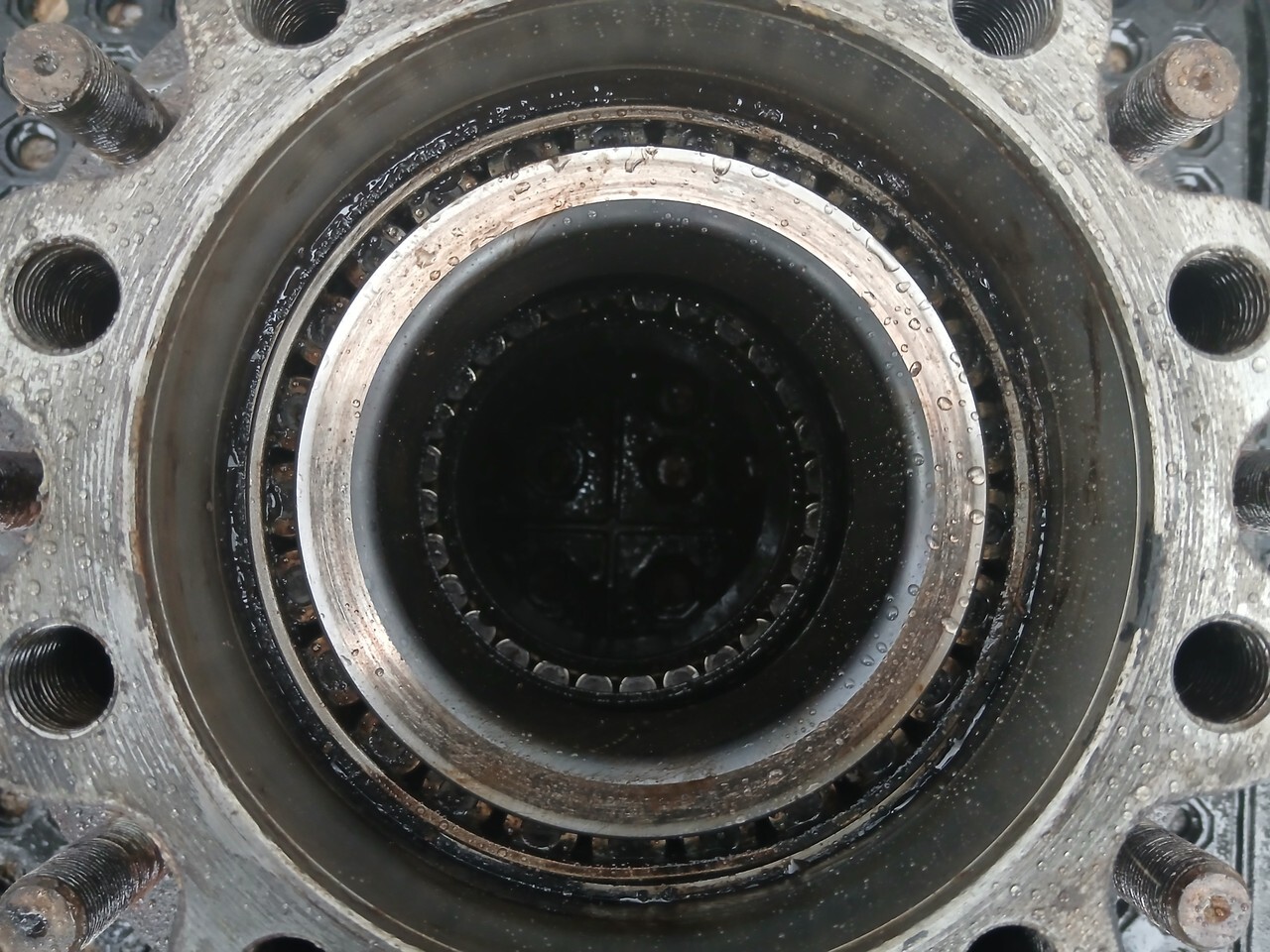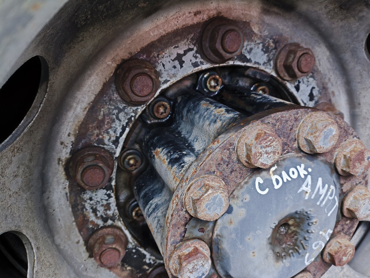 Ступица задняя, левая, правая, L=R, LH=RH, универсальная, на обе стороны, заднего ведущего моста, под 10 отверстий, тормозная система, под дисковые тормоза, с подшипником и тормозным диском в сборе, остаток тормозного диска.