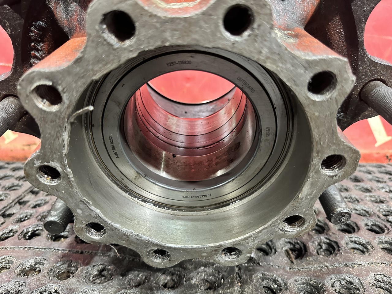 Ступица задняя, левая, правая, L=R, LH=RH, универсальная, на обе стороны, заднего ведущего моста, под 10 отверстий, тормозная система, под дисковые тормоза, с подшипником, остаток тормозного диска - 45мм.