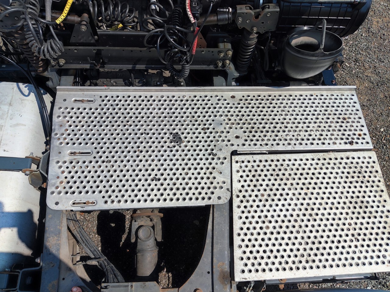 Трап на раму центральный, трапик средний, по центру, за кабиной, подставка, подножка, щит, защита, металлическая, мост, мостик, площадка обслуживания.