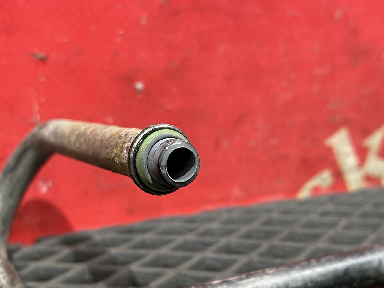Трубка кондиционера осушителя, кондея, патрубок системы кондиционирования воздуха, под капотом, труба, металлическая, трубопровод, шланг.
