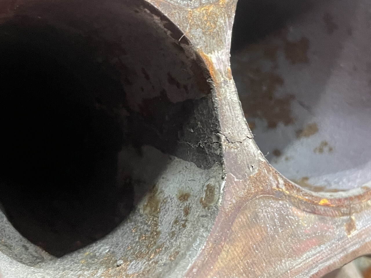 Присутствует трещина на горячей части турбины, отображено на фотографии!