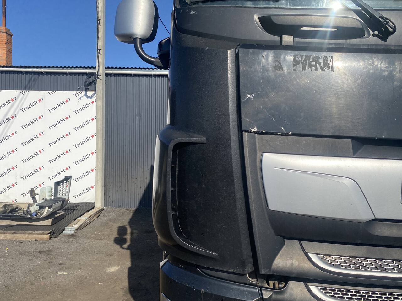Дефлектор грязевой правый, справа, R, RH, внутренний, кабины, кузова, угол, накладка, пластик, угол капота, обтекатель, спойлер, забор воздуха, дефлектор кабины правый, пластиковый, ветроотражатель правый, аэродинамический элемент.