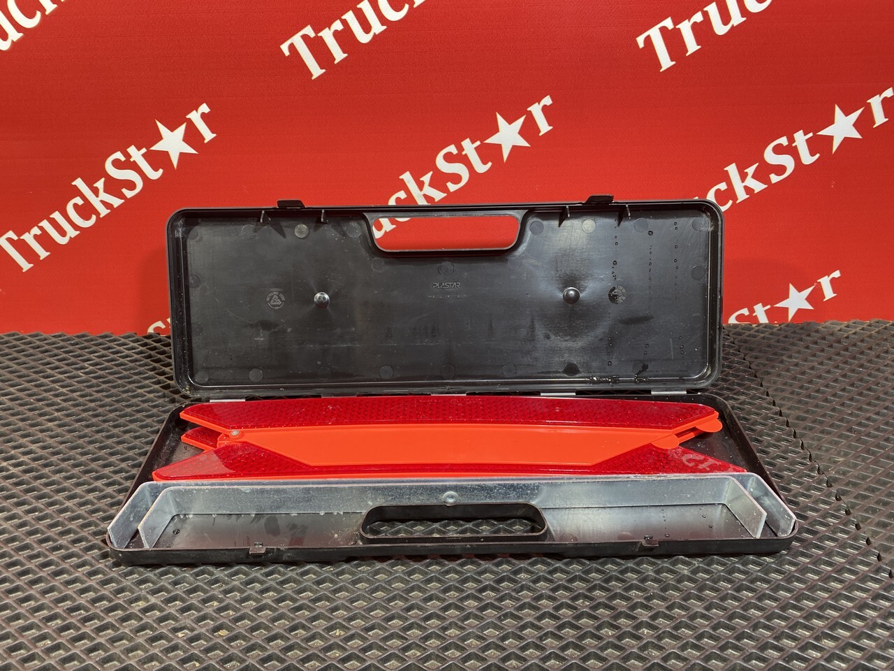Знак аварийной остановки, треугольник, раскладывающийся, светоотражающий, светоотражатель, классический, на металлических ножках, опорах, предупредительный треугольник, с пластиковой коробкой.